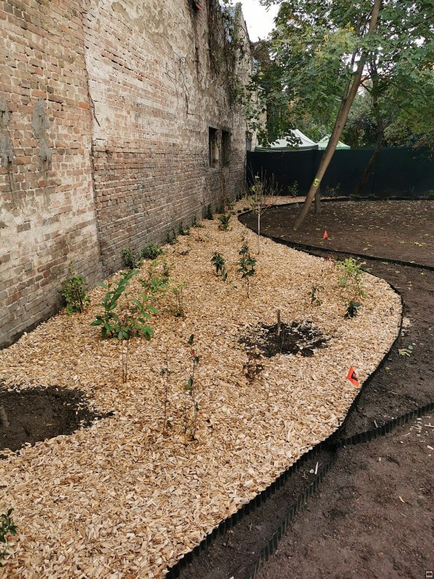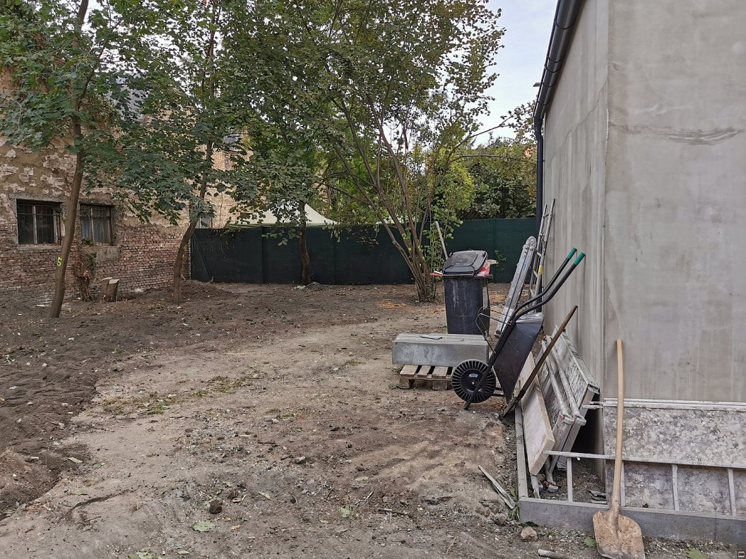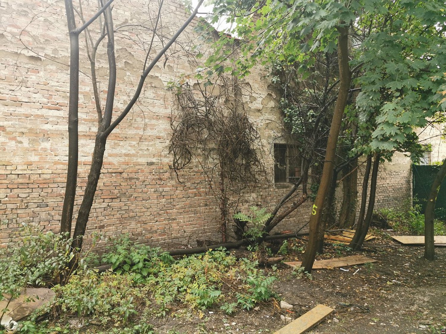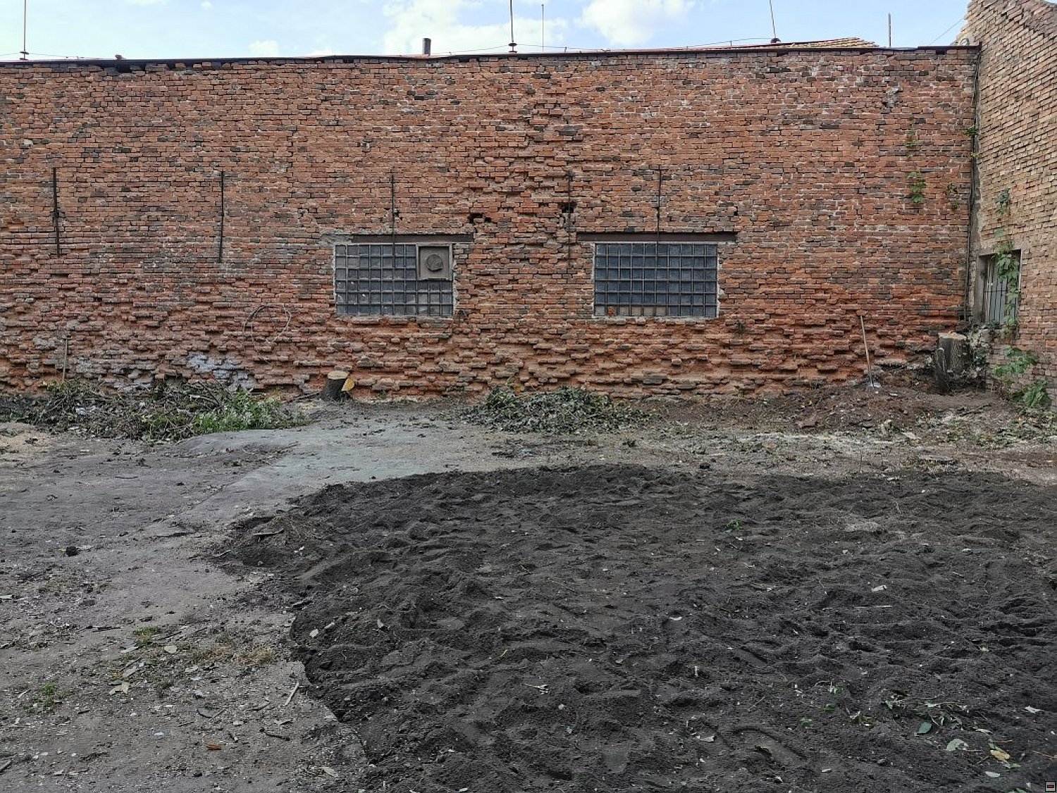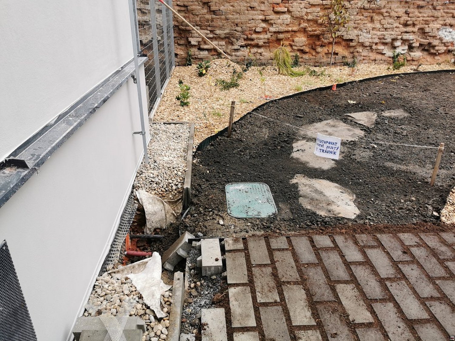 Prostor uvnitř bloku bytového domu byl plný vzrostlých náletových dřevin, místo hlíny směs stavební suti, nepořádku a odpadků. Z tohoto zdevastovaného prostoru jsme měli vytvořit odpočinkovou zahradu.