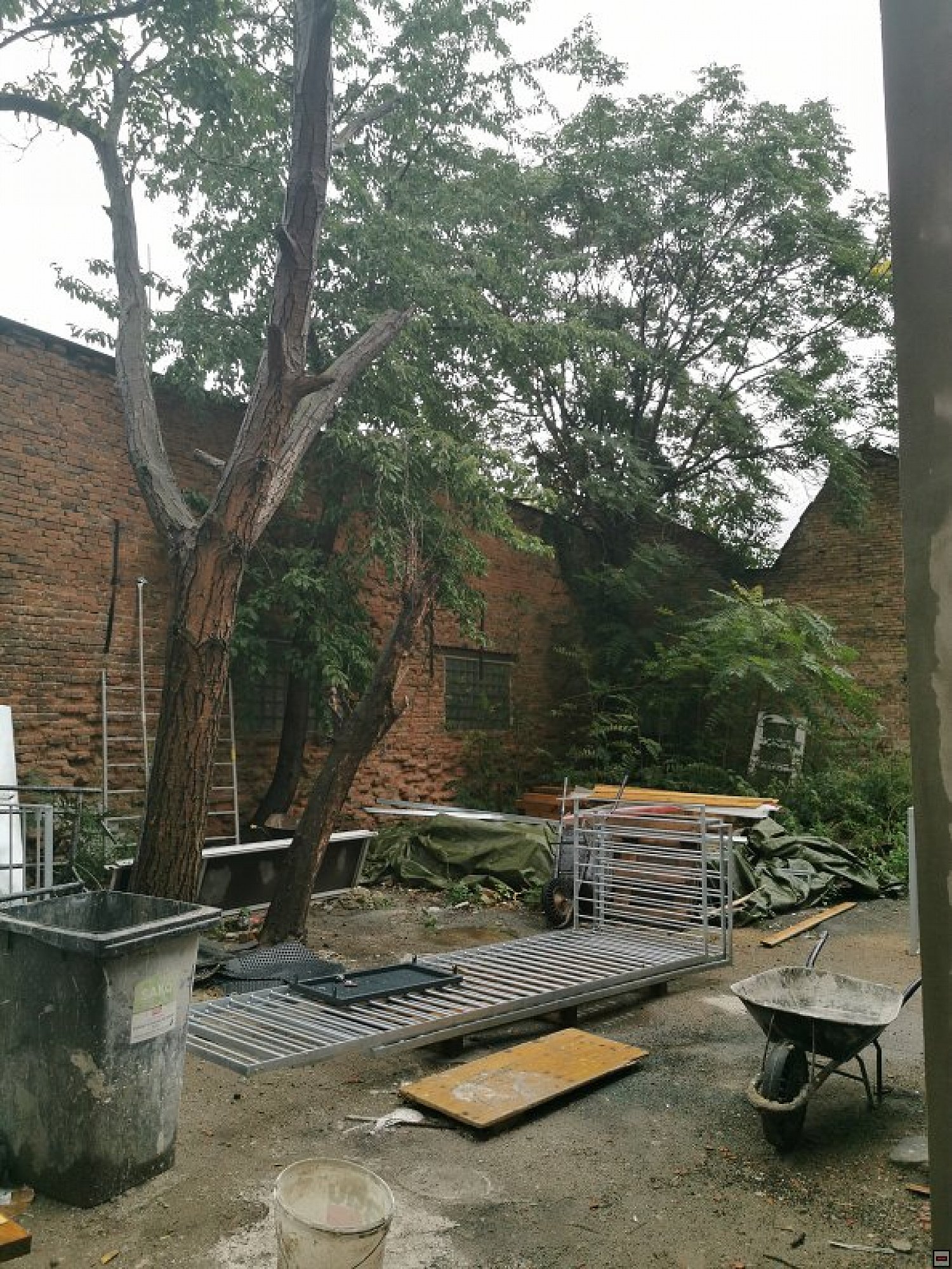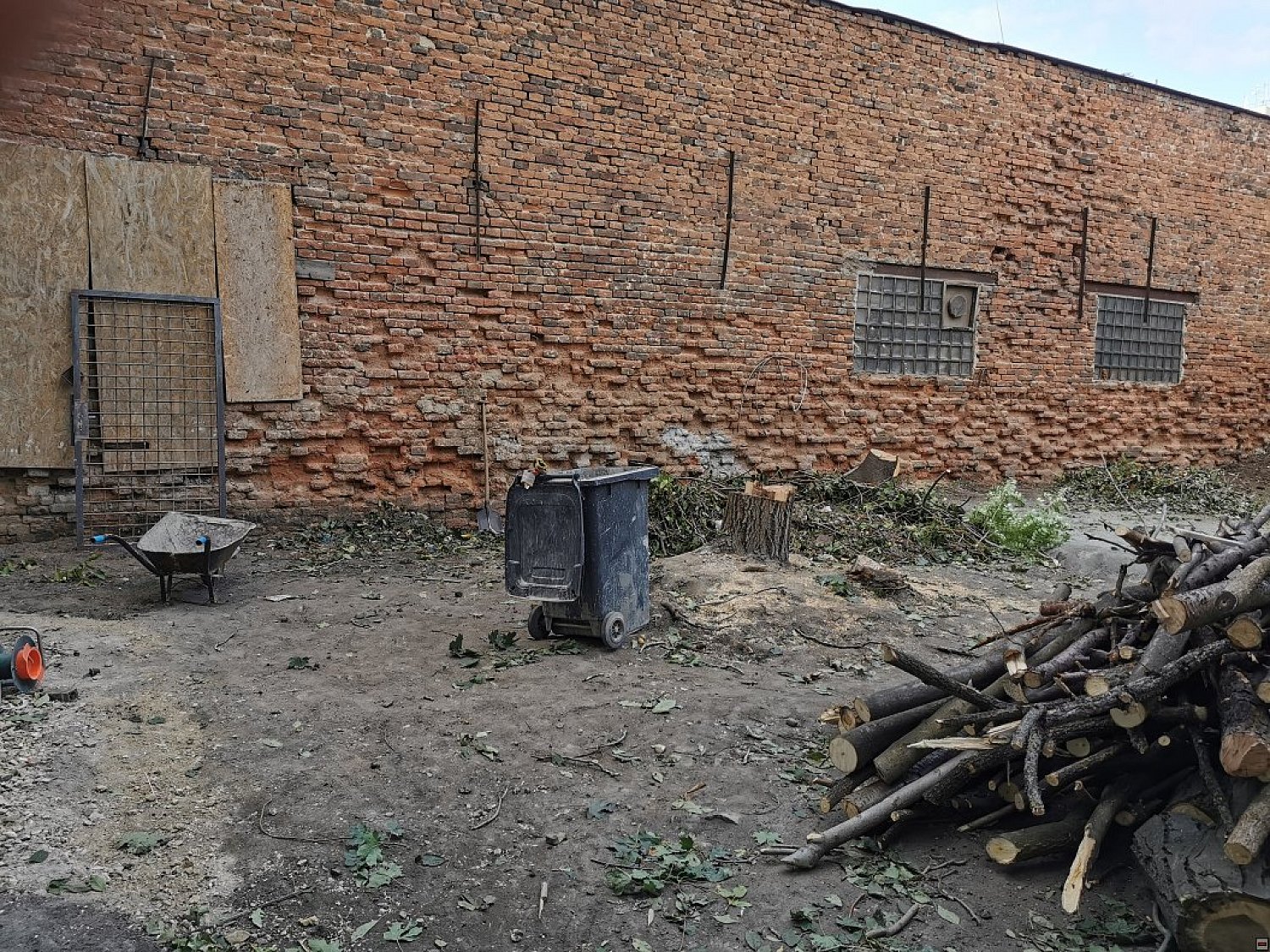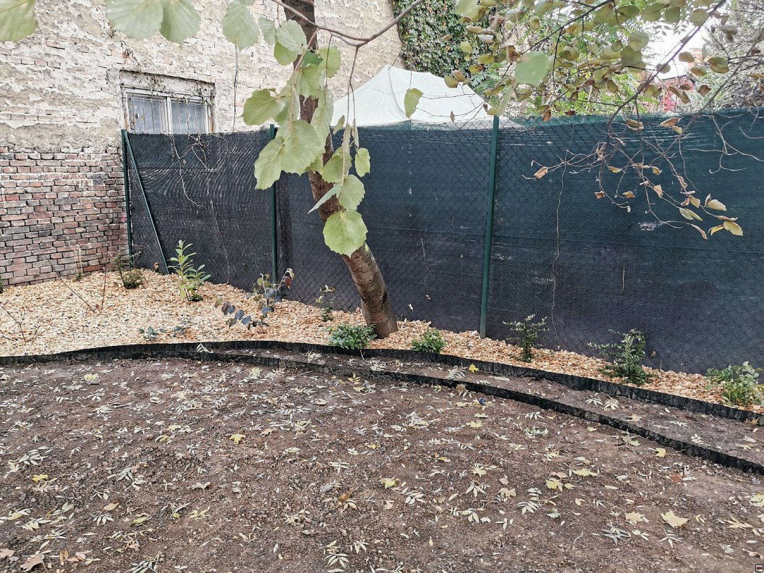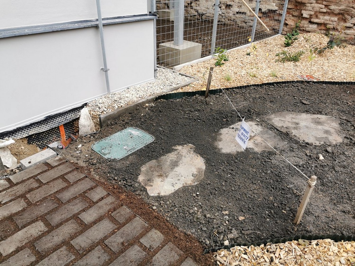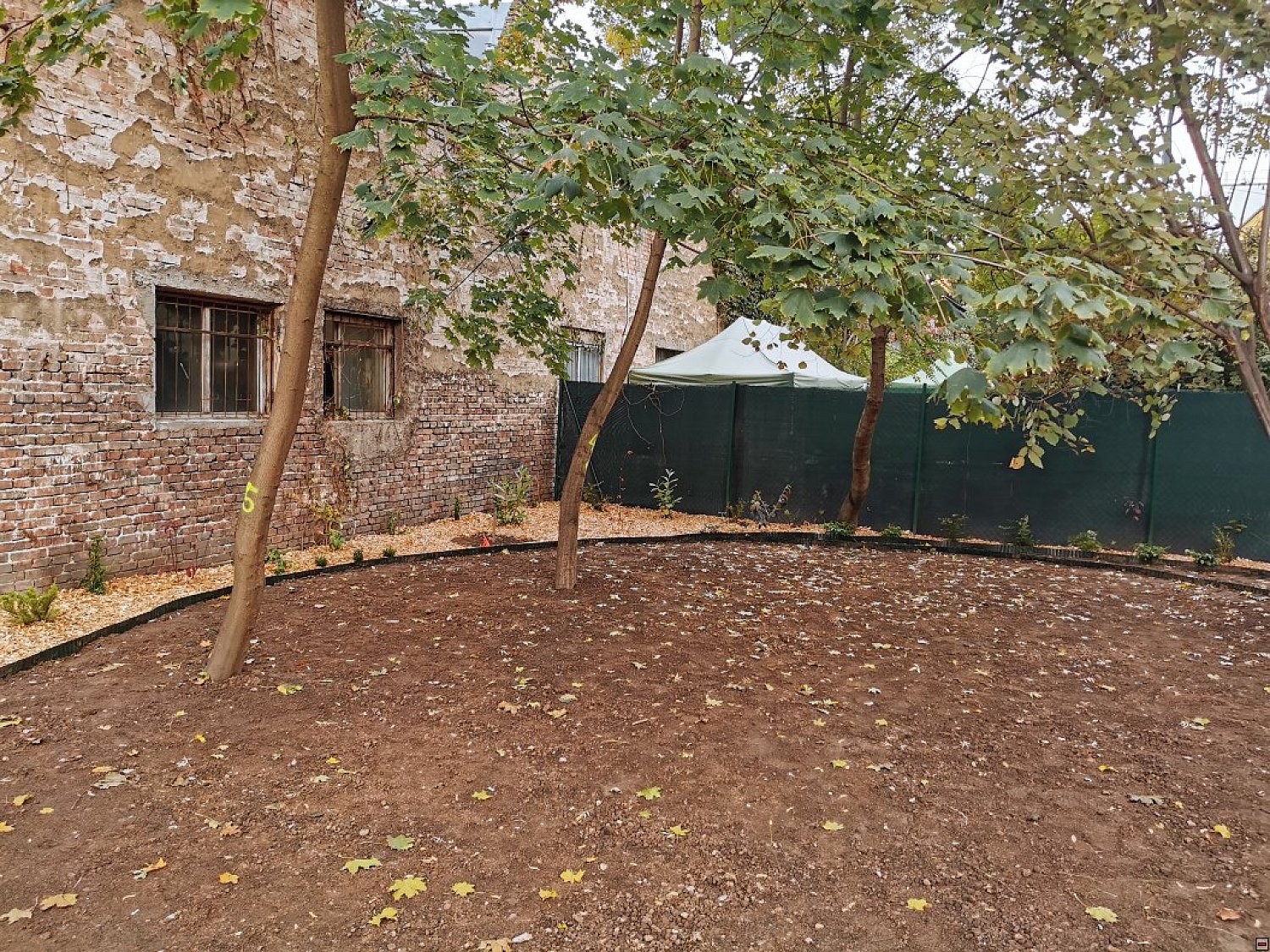 Prostor uvnitř bloku bytového domu byl plný vzrostlých náletových dřevin, místo hlíny směs stavební suti, nepořádku a odpadků. Z tohoto zdevastovaného prostoru jsme měli vytvořit odpočinkovou zahradu.