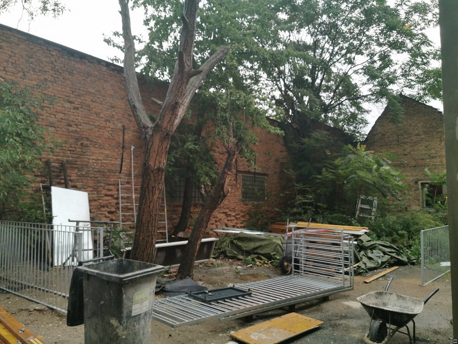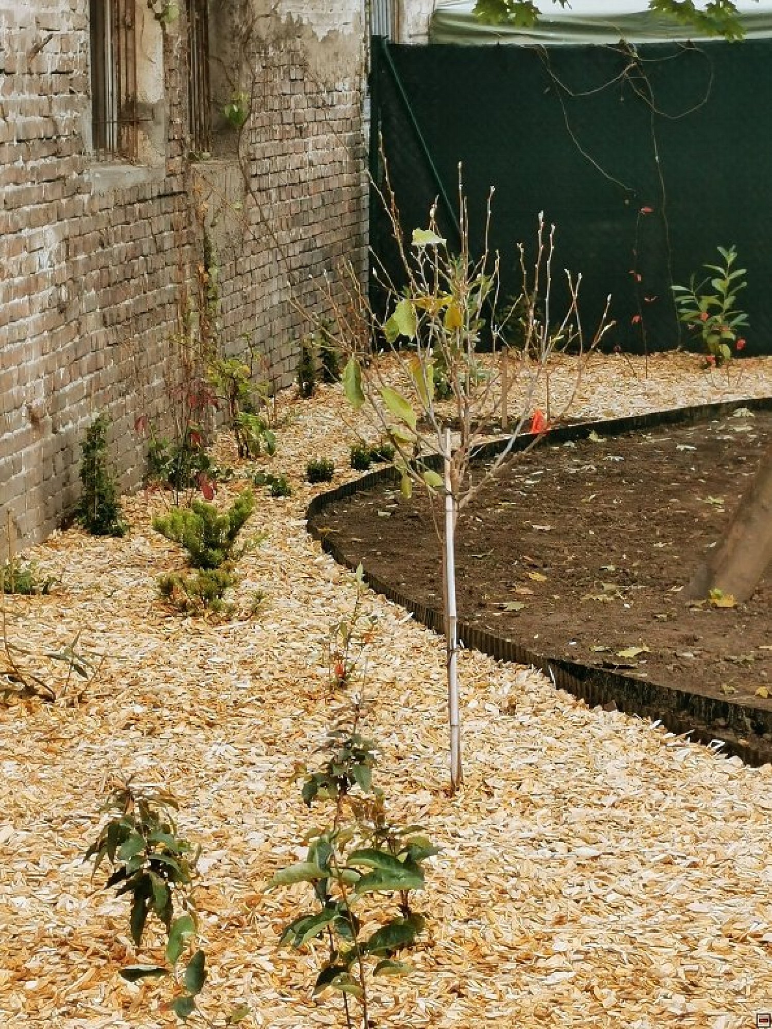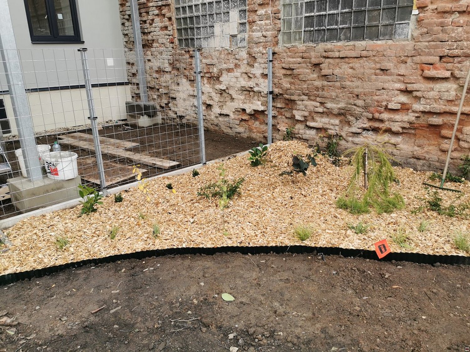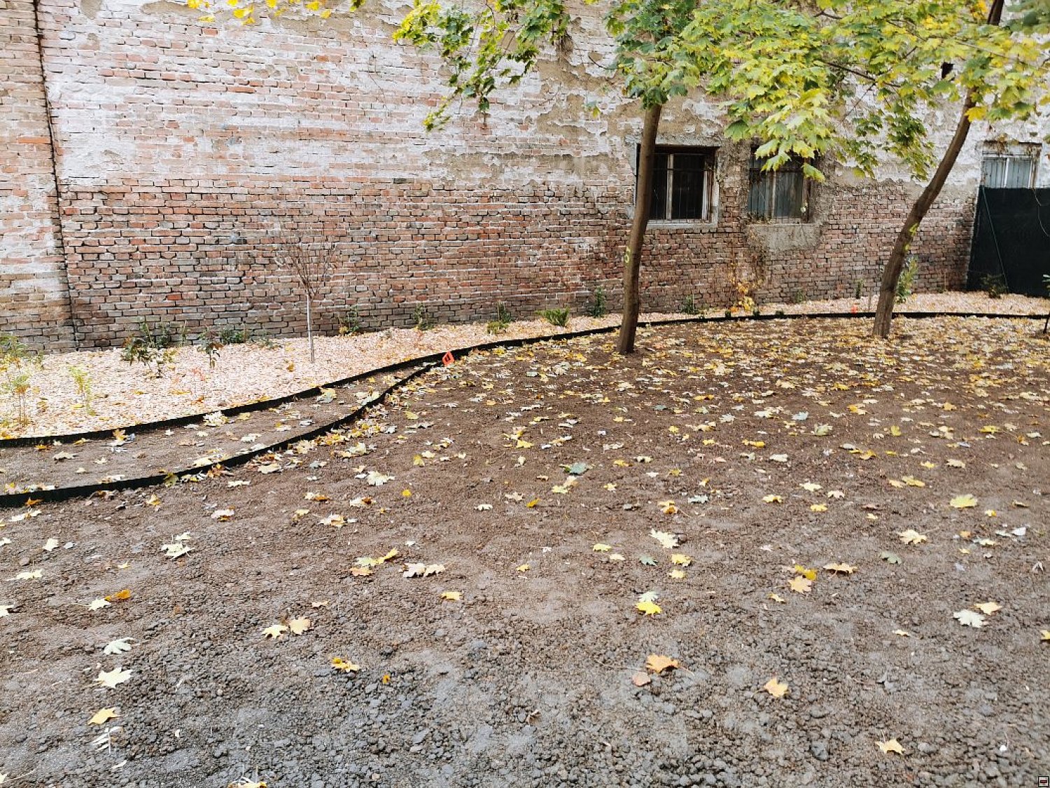 Prostor uvnitř bloku bytového domu byl plný vzrostlých náletových dřevin, místo hlíny směs stavební suti, nepořádku a odpadků. Z tohoto zdevastovaného prostoru jsme měli vytvořit odpočinkovou zahradu.