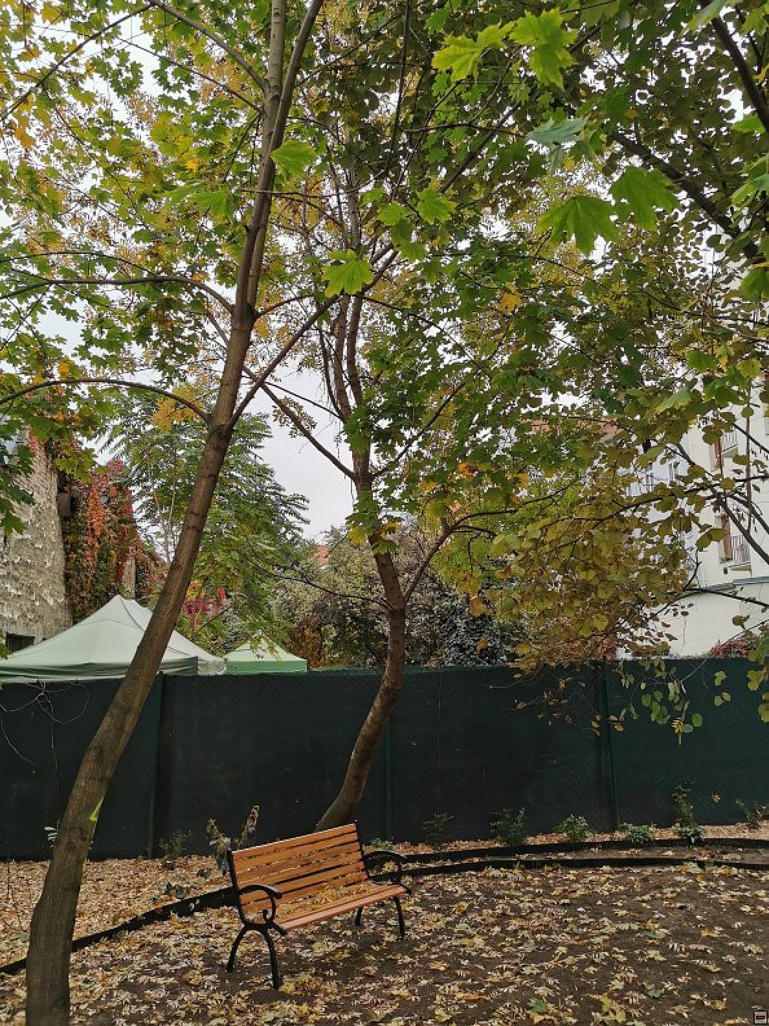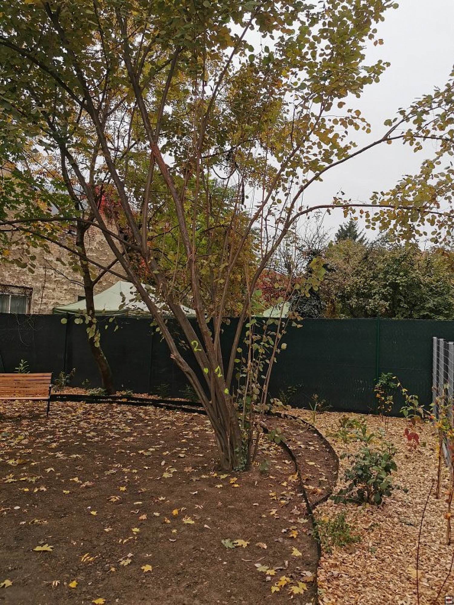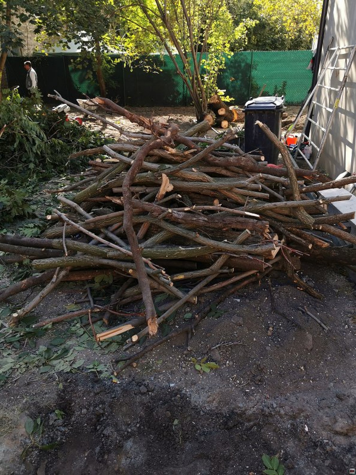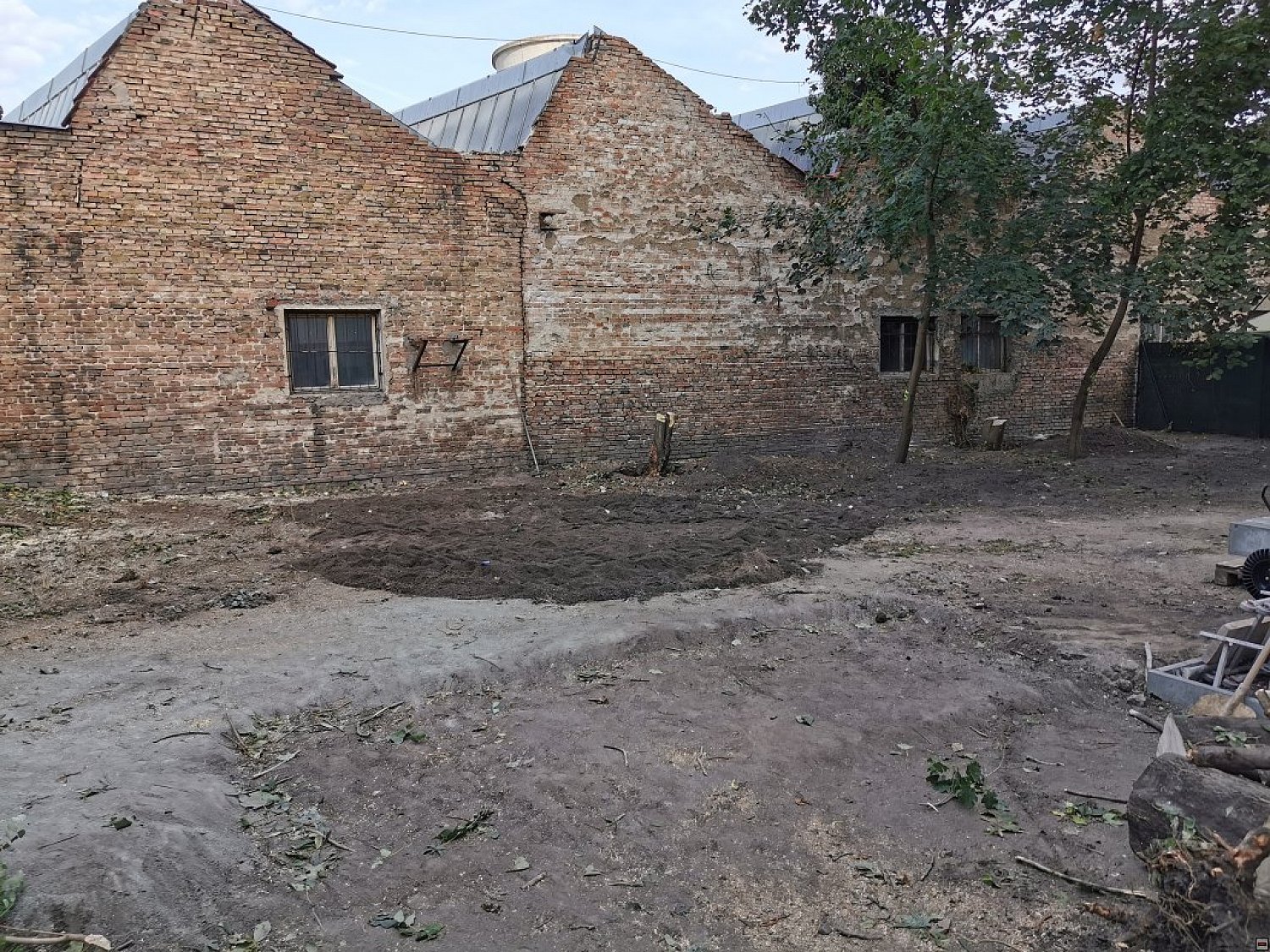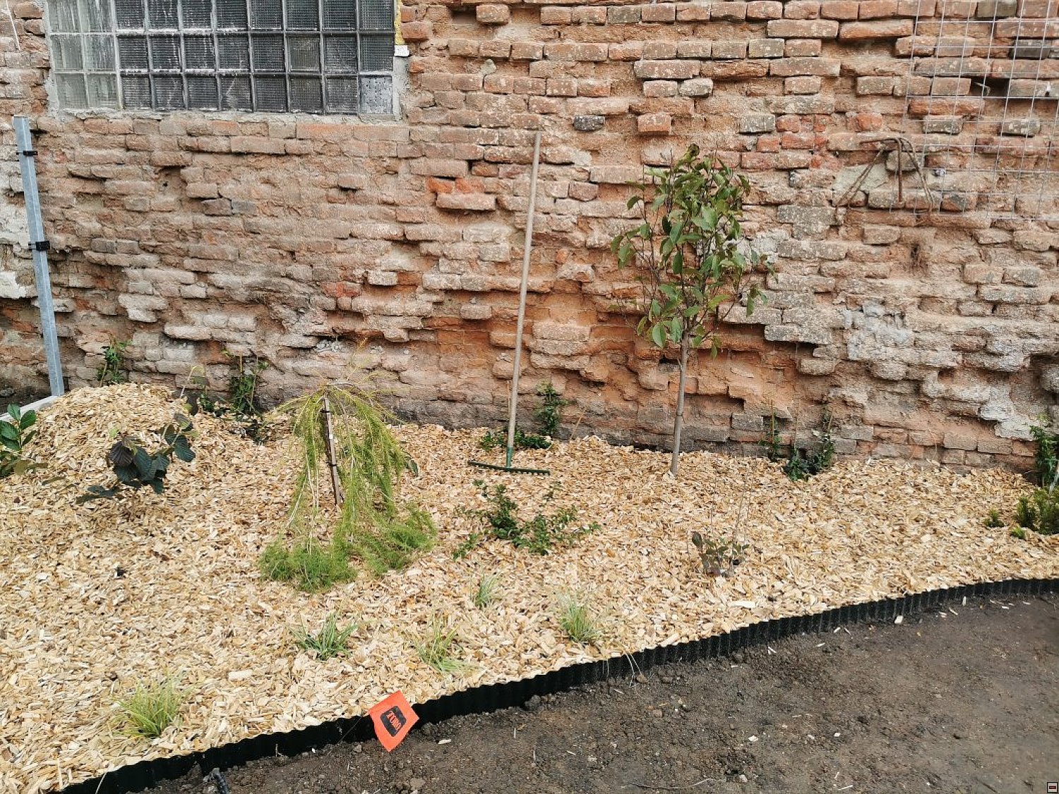 Prostor uvnitř bloku bytového domu byl plný vzrostlých náletových dřevin, místo hlíny směs stavební suti, nepořádku a odpadků. Z tohoto zdevastovaného prostoru jsme měli vytvořit odpočinkovou zahradu.